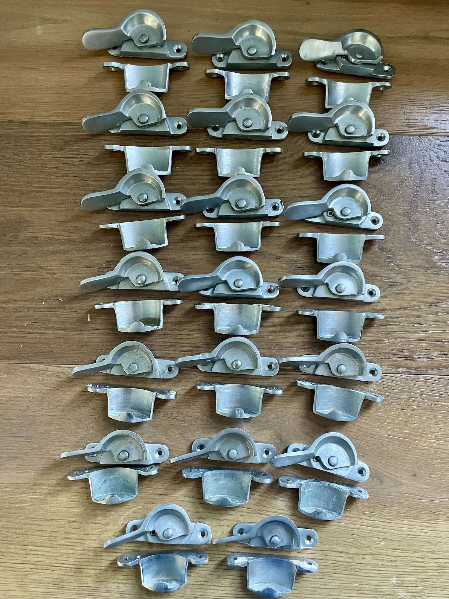21 X BRUSHED CHROME SASH WINDOW LOCKS. £20